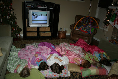 Bundled up kids, handed them hot chocolate & cookies and drove around to look at the Christmas lights. We headed to the Riverwalk, where we actually got out of the car and started walking through the gorgeous lights display, but it felt too sketchy out there in the dark with myself & 3 little ones...and a few junked-out cars in the parking lot, a lone man smoking a cig, 3 teenagers in-and-out of the bathroom, and thoughts of a recent downtown stabbing playing through my mind. We were out of there in less than a minute. The kids were bummed, so we'll go back when Mimi & Papa are here.