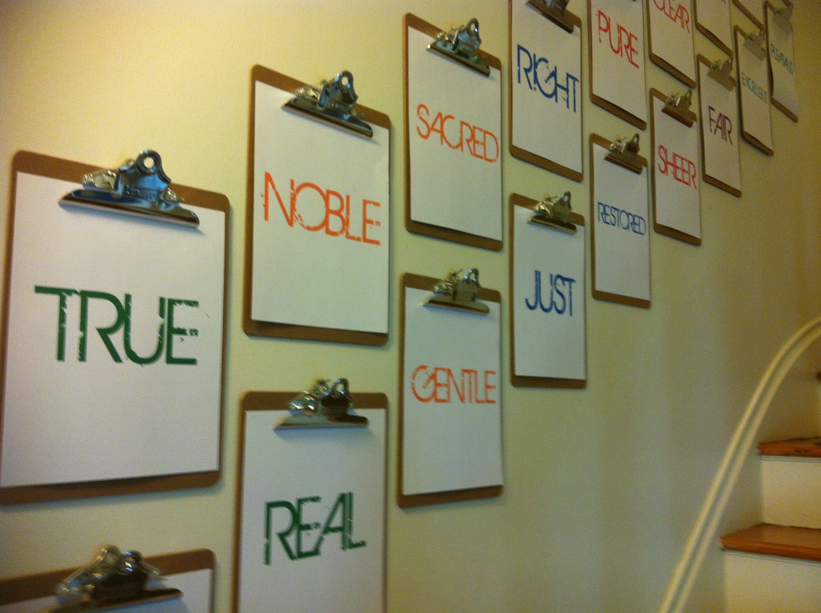 This past month I had a blast running another half marathon in the city with 6 other girlfriends. We got 2 hotel rooms in the city & had a delightful get away. Here is my latest project...my Philippians 4:8 wall to help me in the process of renewing my mind. I've had to let go of some tough things these past two weeks, & just going on a personal journey of finding myself again and who I am in Christ. Tough, but good.